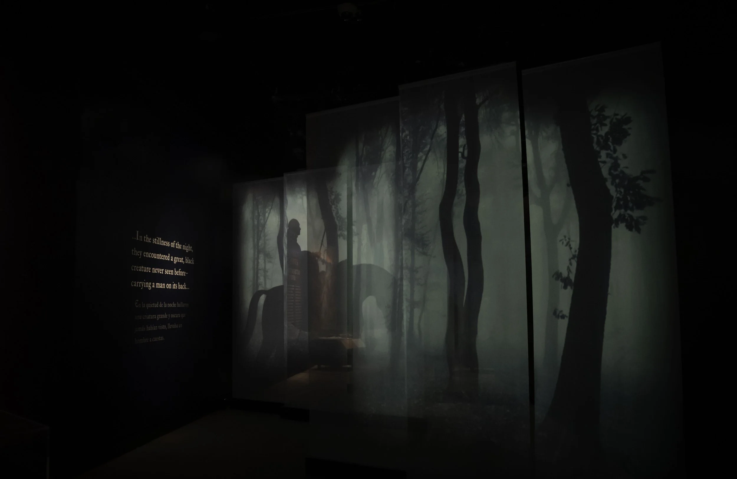 For the First Kings of Europe exhibition, I created an immersive environment that transported visitors into a mysterious foggy forest. Using projection mapping on layered translucent fabric, I created shifting light patterns and subtle animations that evoked the sensation of moving through mist and trees.